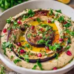 A creamy and savory roasted eggplant dip infused with tahini and lemon juice, perfect for dipping or spreading.