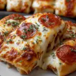 Knusprige Brotsticks mit schmelzendem Käse und würziger Pepperoni, ideal für jeden Snack-Anlass.